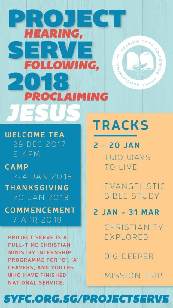 Project Serve is a full-time Christian ministry internship programme for ‘O’, ‘A’ leavers and youths who have finished National Service.