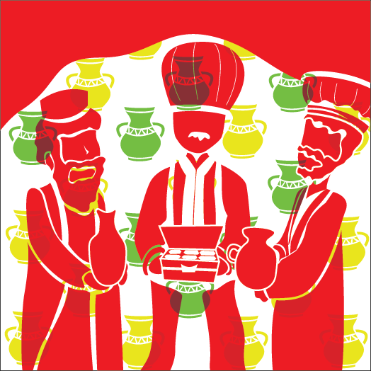 The wise men appear. They followed a star, of royalty being born, and it led them to where the King was born. They brought royal gifts of frankincense, gold and myrrh.