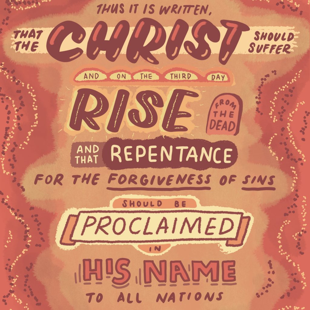 “Thus it is written, that the Christ should suffer and on the third day rise from the dead, and that repentance for the forgiveness of sins should be proclaimed in his name to all nations…” (Lk 24:45-47)
