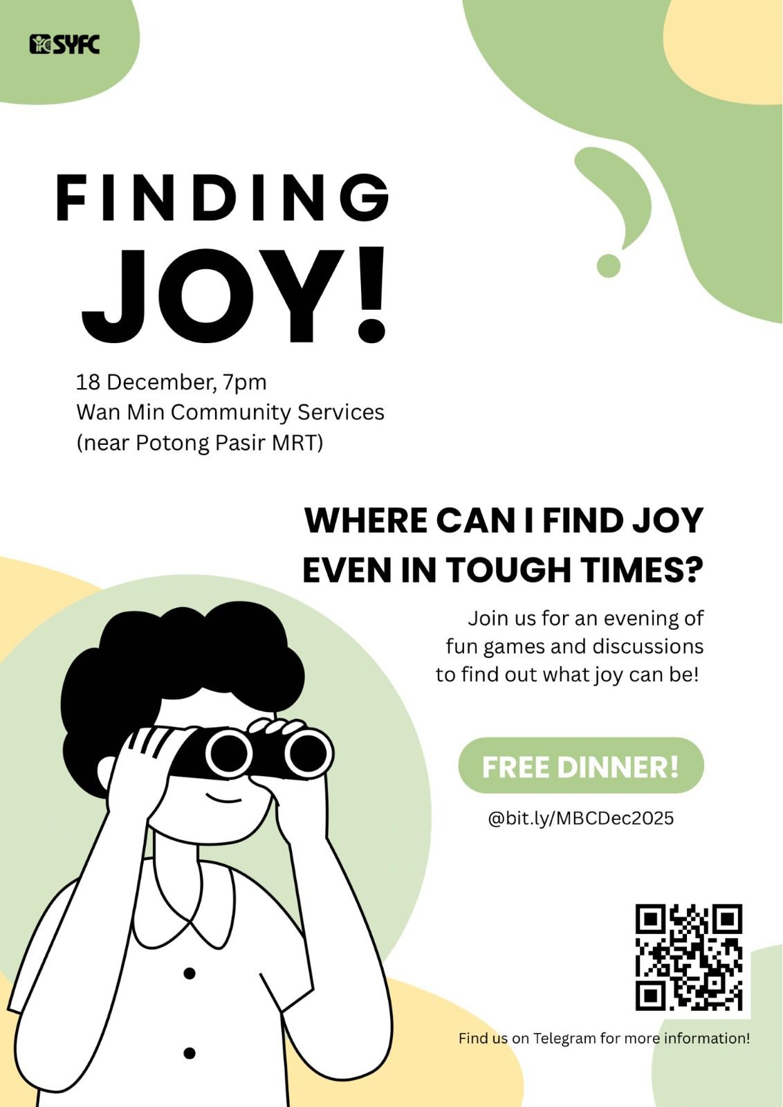 Pair up with an experienced person to share the hope of Christmas with passers-by along Orchard Road, outside Wisma Atria.